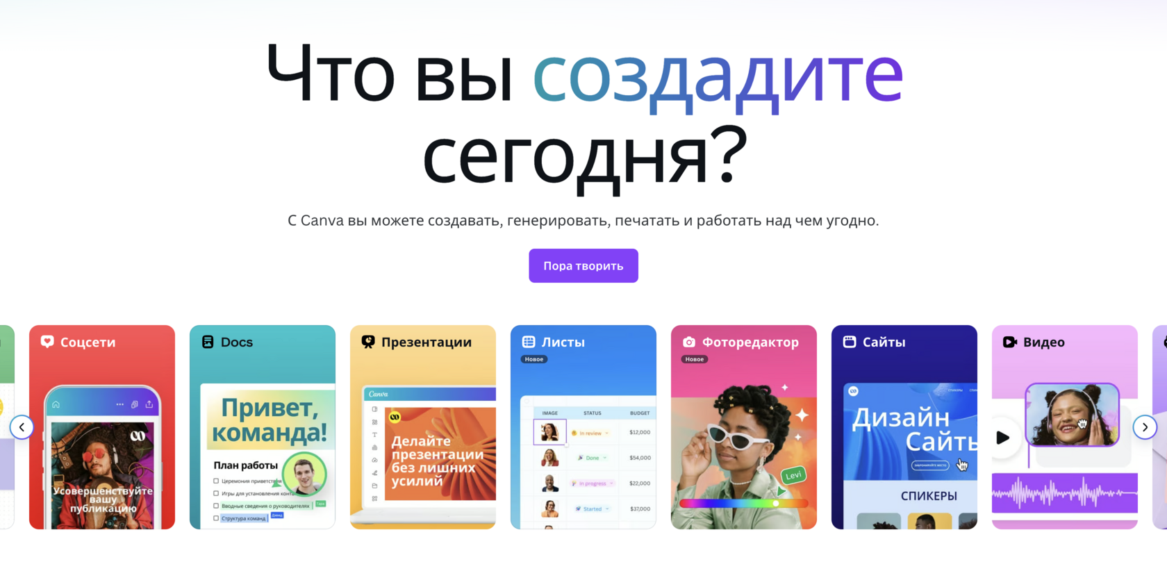 Canva — это интуитивно понятная онлайн-платформа для графического дизайна, которая позволяет даже новичкам создавать профессионально выглядящие материалы. С ее помощью миллионы людей по всему миру делают посты для социальных сетей, презентации, плакаты, видео и многое другое, не обладая навыками работы в сложных программах вроде Photoshop. Простота, доступность и огромная библиотека готовых шаблонов сделали Canva незаменимым инструментом для маркетологов, SMM-специалистов, предпринимателей и блогеров.