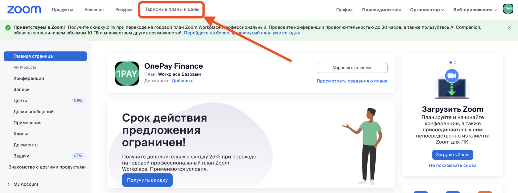 Шаг 3: Выбор тарифного плана в Zoom