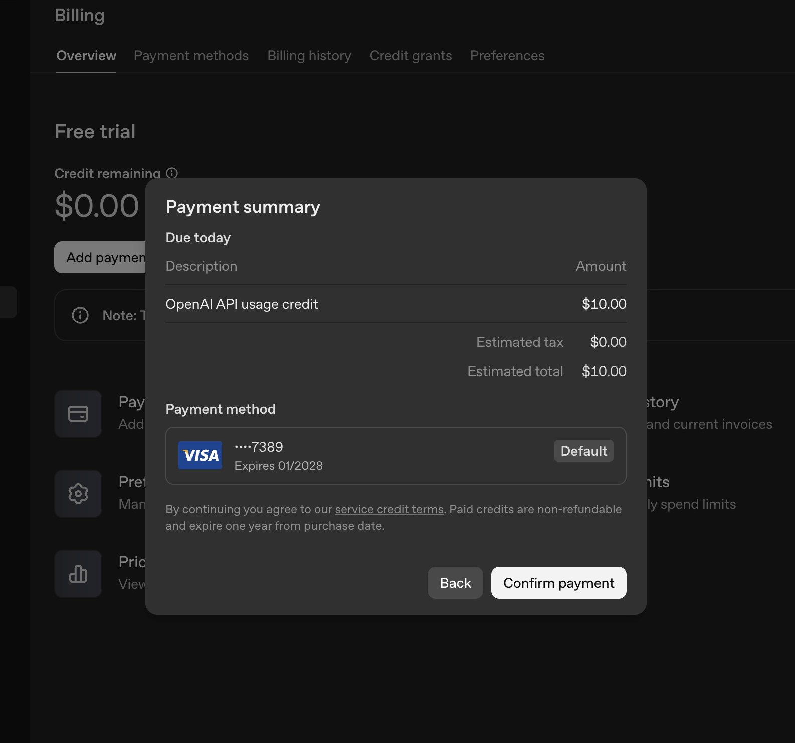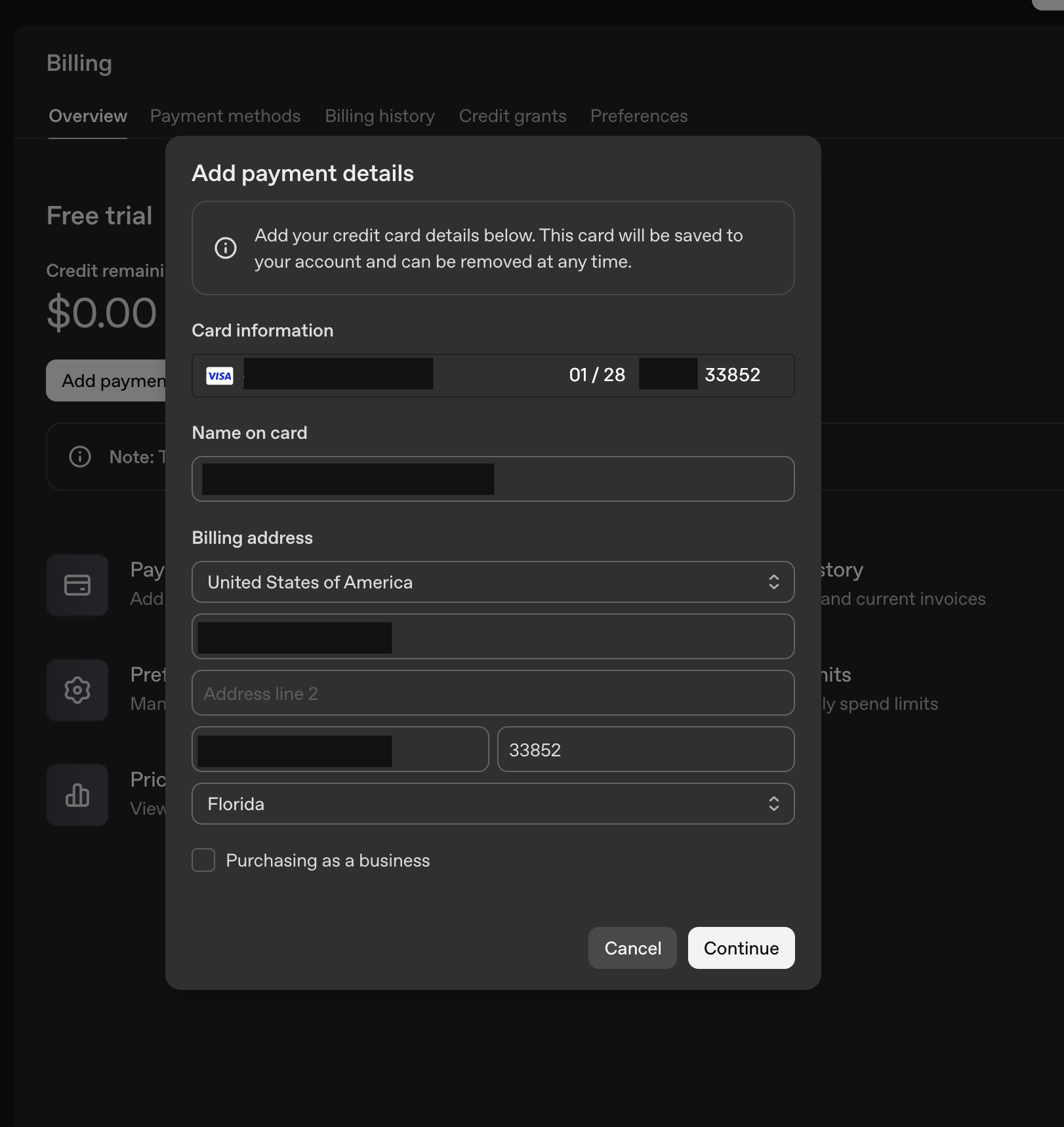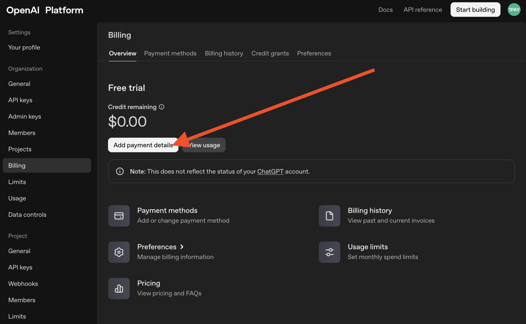 Шаг 3: Привязка карты к аккаунту OpenAI