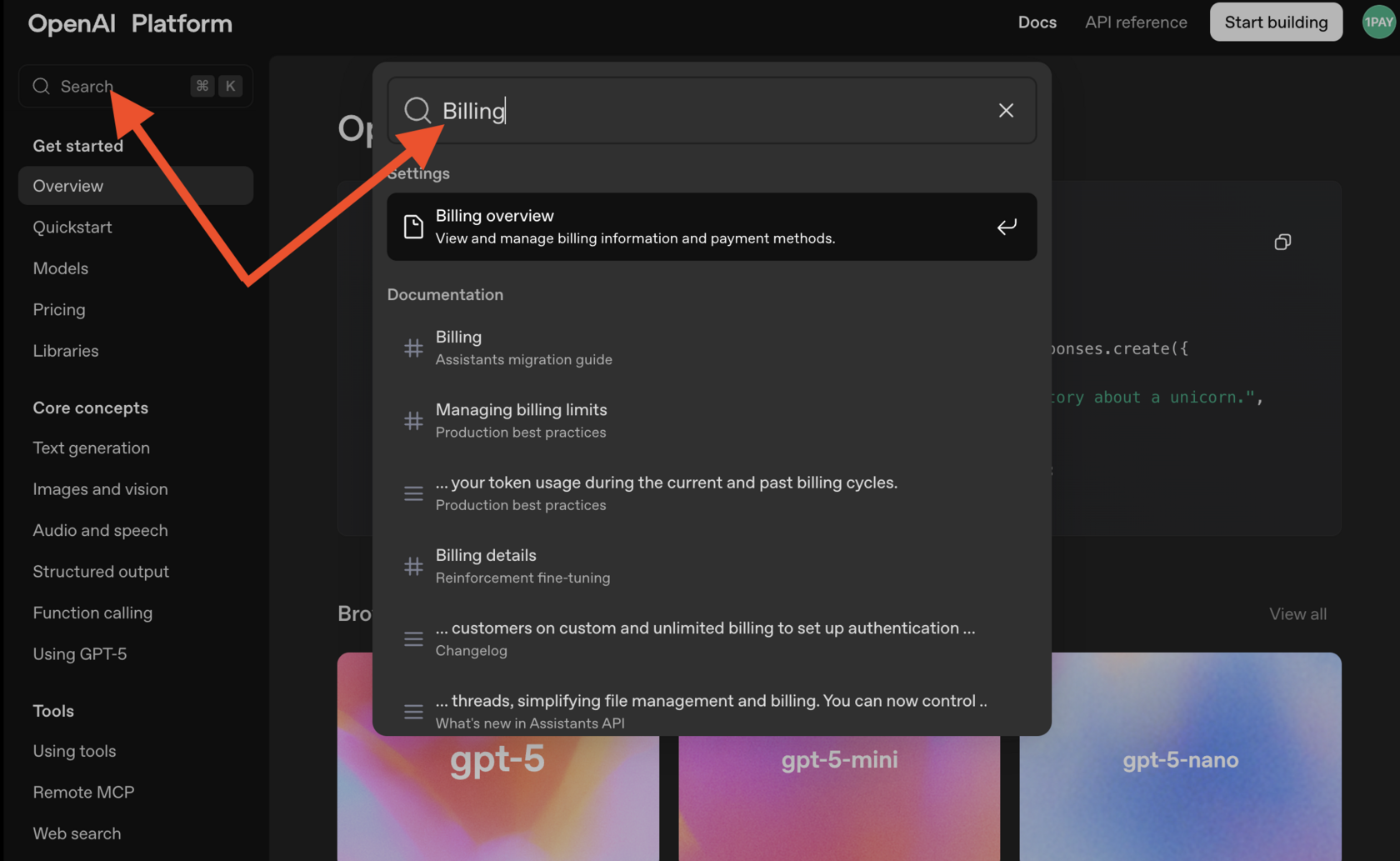 - В левом верхнем углу нажмите на строку поиска и введите «Billing».