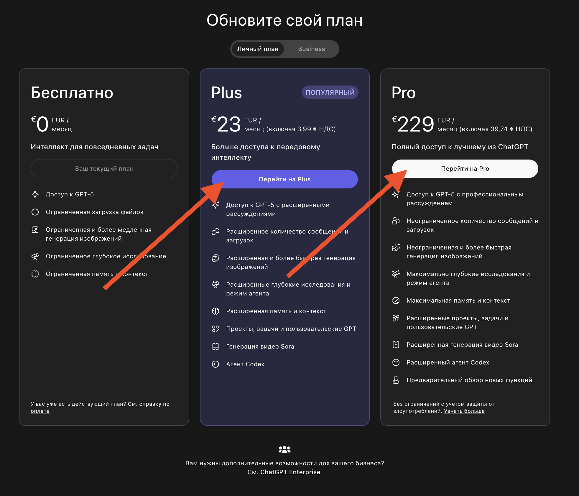 Изначально сервис доступен бесплатно, но с некоторыми ограничениями, такими как снижение скорости ответов в периоды высокой нагрузки. Чтобы снять все лимиты и получить доступ к самым новым функциям, существует платная подписка ChatGPT Plus. Именно ее оплата открывает полный потенциал нейросети и обеспечивает стабильный доступ к сервису OpenAI.